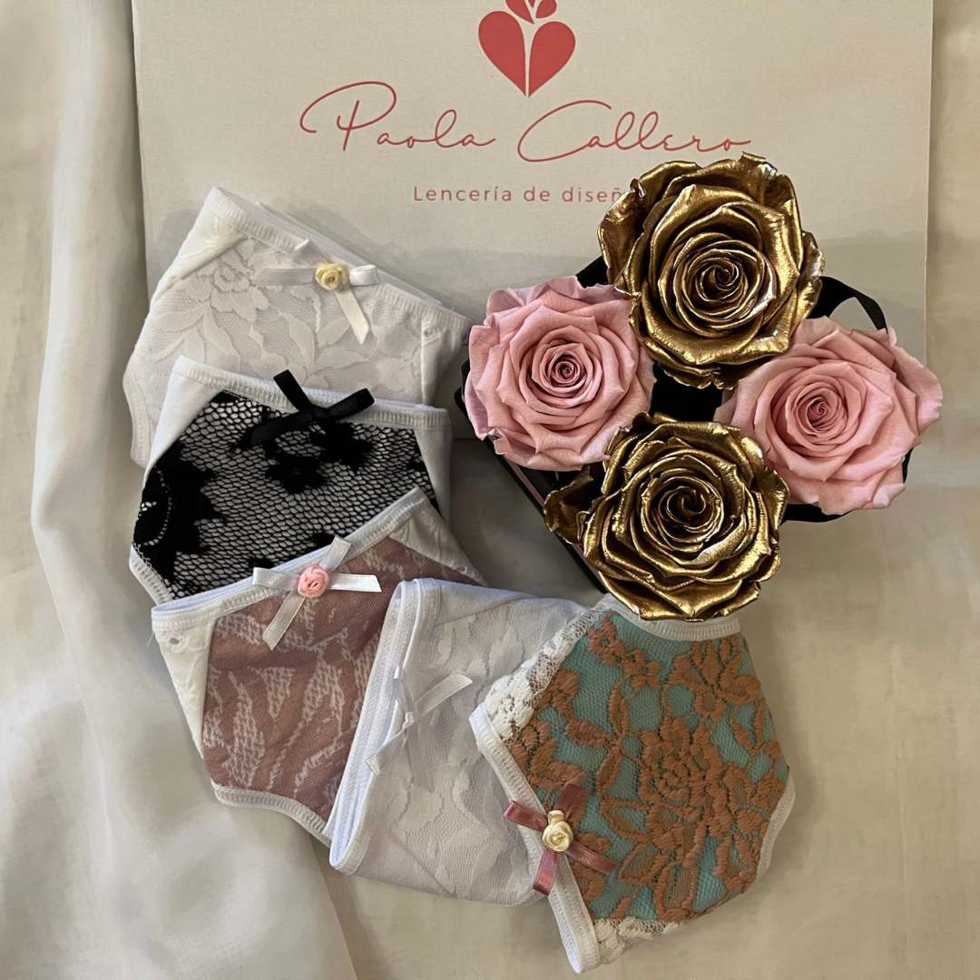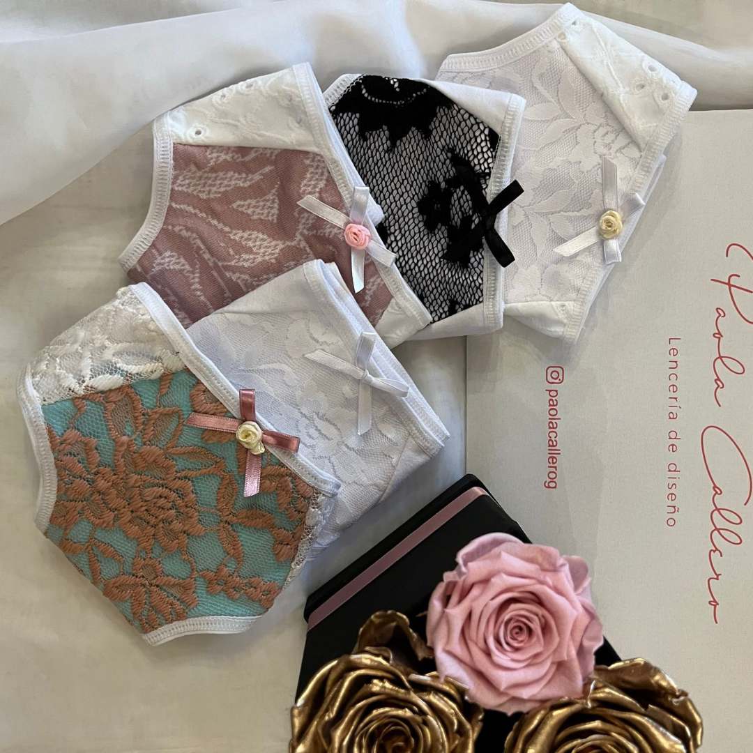 Este set incluye 5 colaless de algodón, con delicados detalles de encaje superpuesto, pensados para brindar suavidad, frescura y evitar irritaciones o alergias.